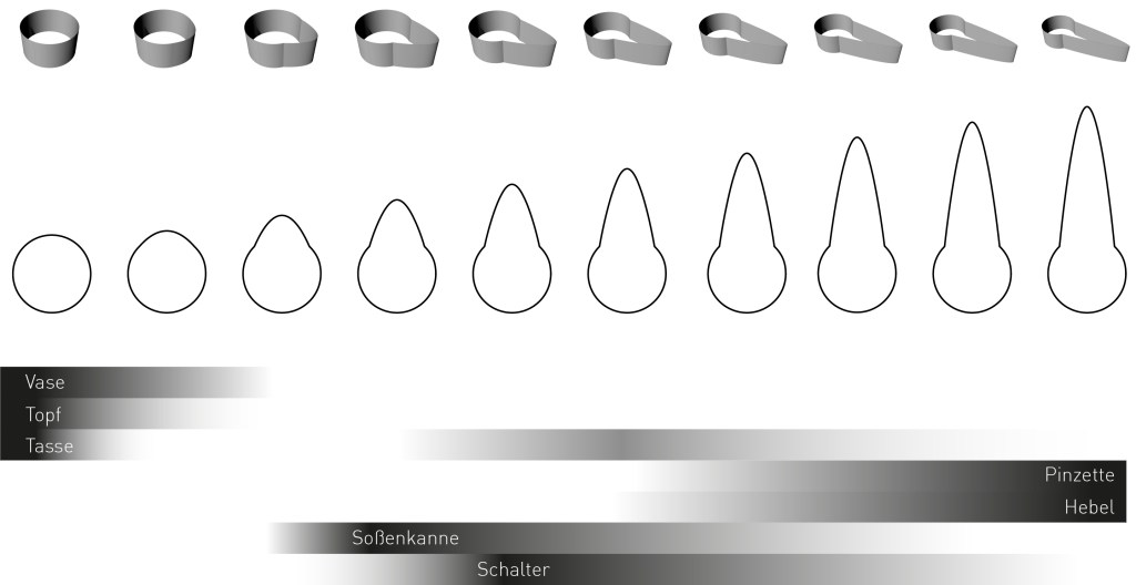 Es gibt unzählige Objekte, deren Form von den Menschen unterbewusst akzeptiert wird, ohne sie zu hinterfragen. Allerdings können oder sollen Objekte natürlich im Laufe der Zeit neu geformt werden. Zum Beispiel haben typische Weingläser haben Fuß. Diese Form symbolisierte früher Macht und Reichtum. Heutzutage können Designer auf solche symbolischen Funktionen zurückgreifen und sie zu modernen Funktionen transformieren.